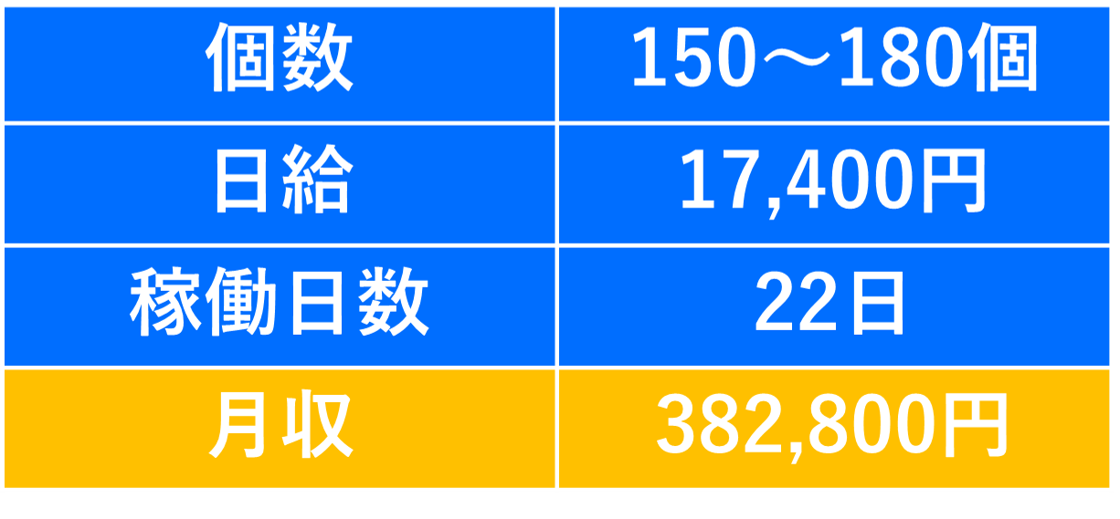 配達した荷物の量に応じて報酬が支給されます。仕事に慣れて速く配達できる方にオススメです。※案件ごとに、その他モデルケースあり。